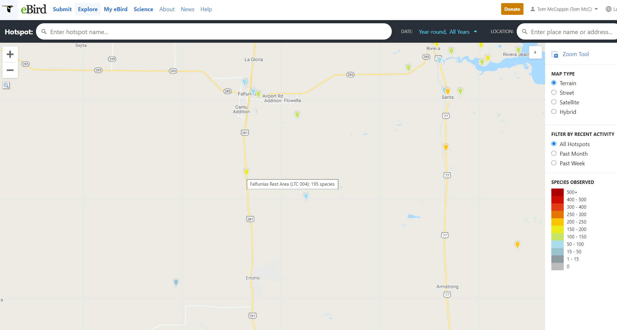 Falfurrias Rest Stop eBird Hotspot Map