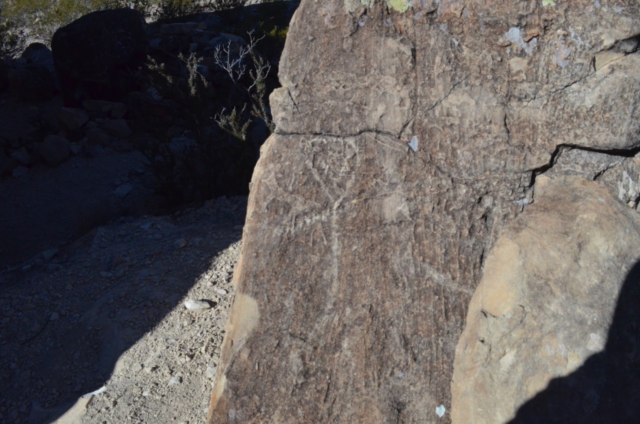 I hiked the Chimneys Trail in Big Bend National Park on January 7, 2016, searching for rock art. Below is a brief description of my hike and some of the photos I took that day. The Chimney’s Trail site contains petroglyphs, a few pictographs, and ample abundance of bed rock grinding holes and incised marks. While not a particularly stunning hike (other than the rock art), the petroglyph panel found there is one of the nicest Big Bend has to offer.